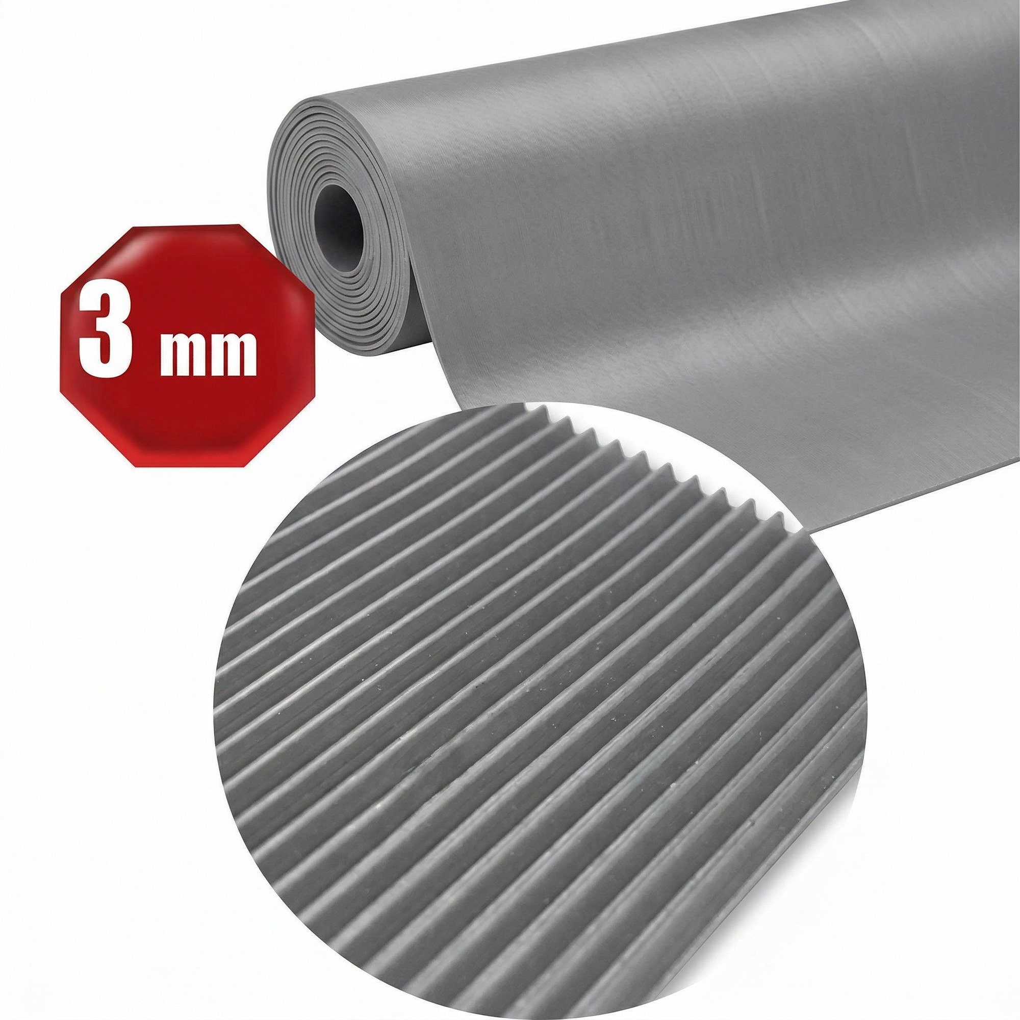 Gummiläufer Feinrillen grau, Feinriefenmatte, 3 mm dick, 100 cm breit, Länge 20-1000 cm